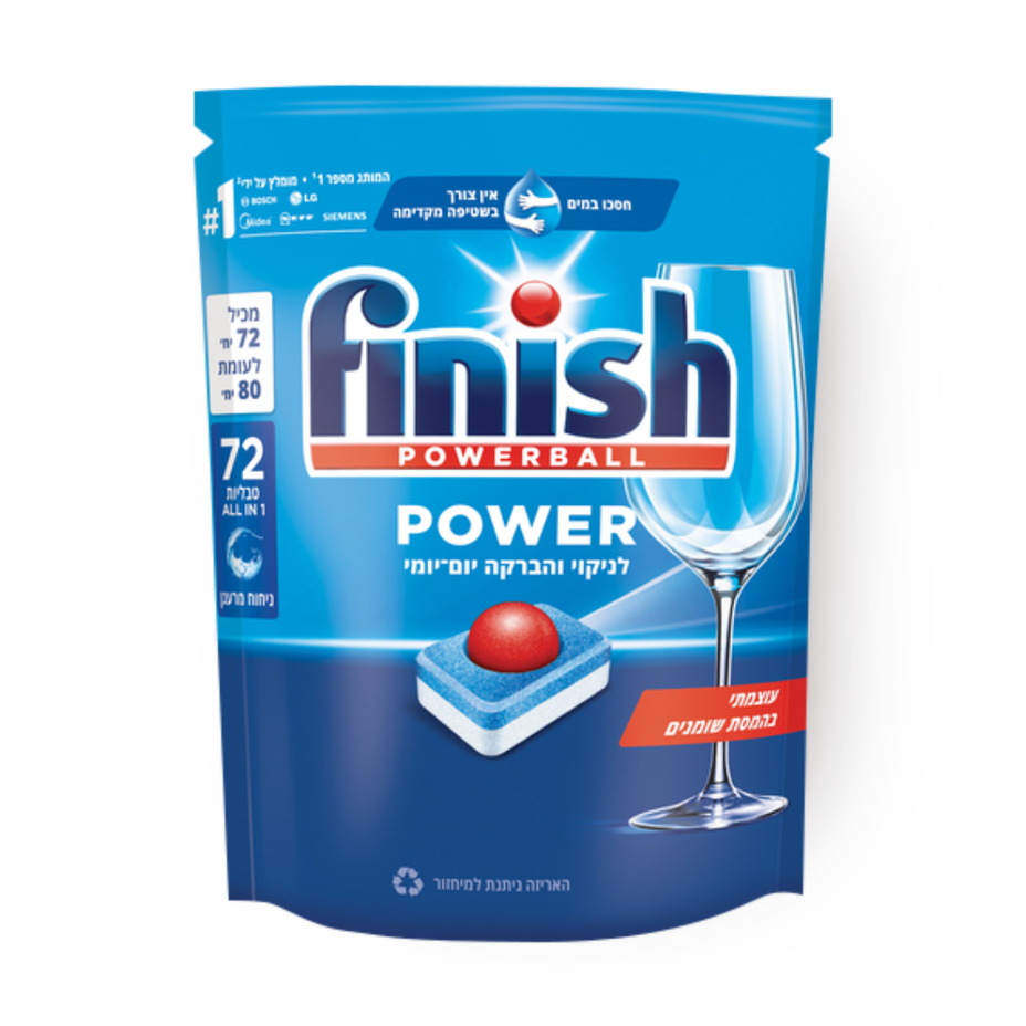 • Tablets for the Finish All in 1 dishwasher for thorough cleaning with every wash. • A tablet with the PowerBall which increases its efficiency and allows it to remove stuck food residues. • A tablet that protects the glassware and the dishwasher from scale in its internal parts. • The action of the salt included in the tablet is effective in water Soft, medium and hard. For areas with high water hardness, you should also add finish to the dishwasher.