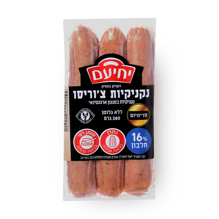 19.9 ₪Tagged ingredients: High Sodium, kosher16.58 ₪ / 100 g - Chicken sausages1.5 kg