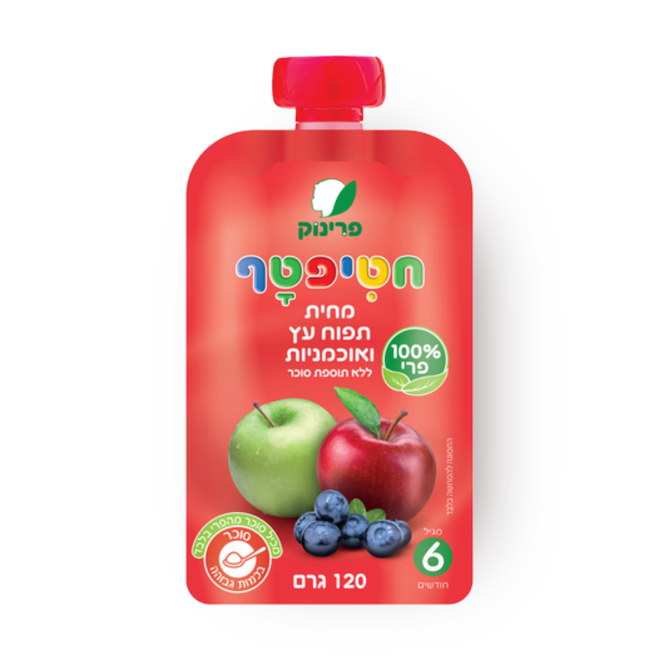 פרינוק חטיפטף מחית תפוח עץ ואוכמניות 100% פרי, 120 גרם