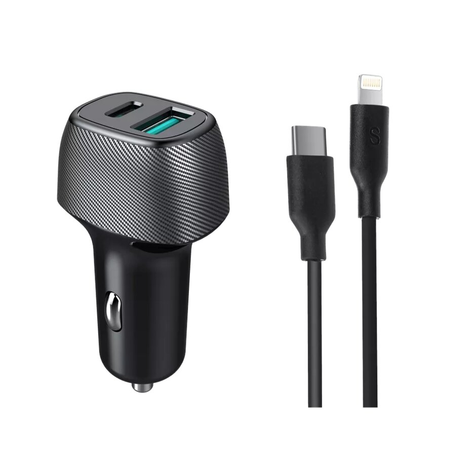 High quality car charger model QC18W+PD25W+ Lightning to Type-C cable