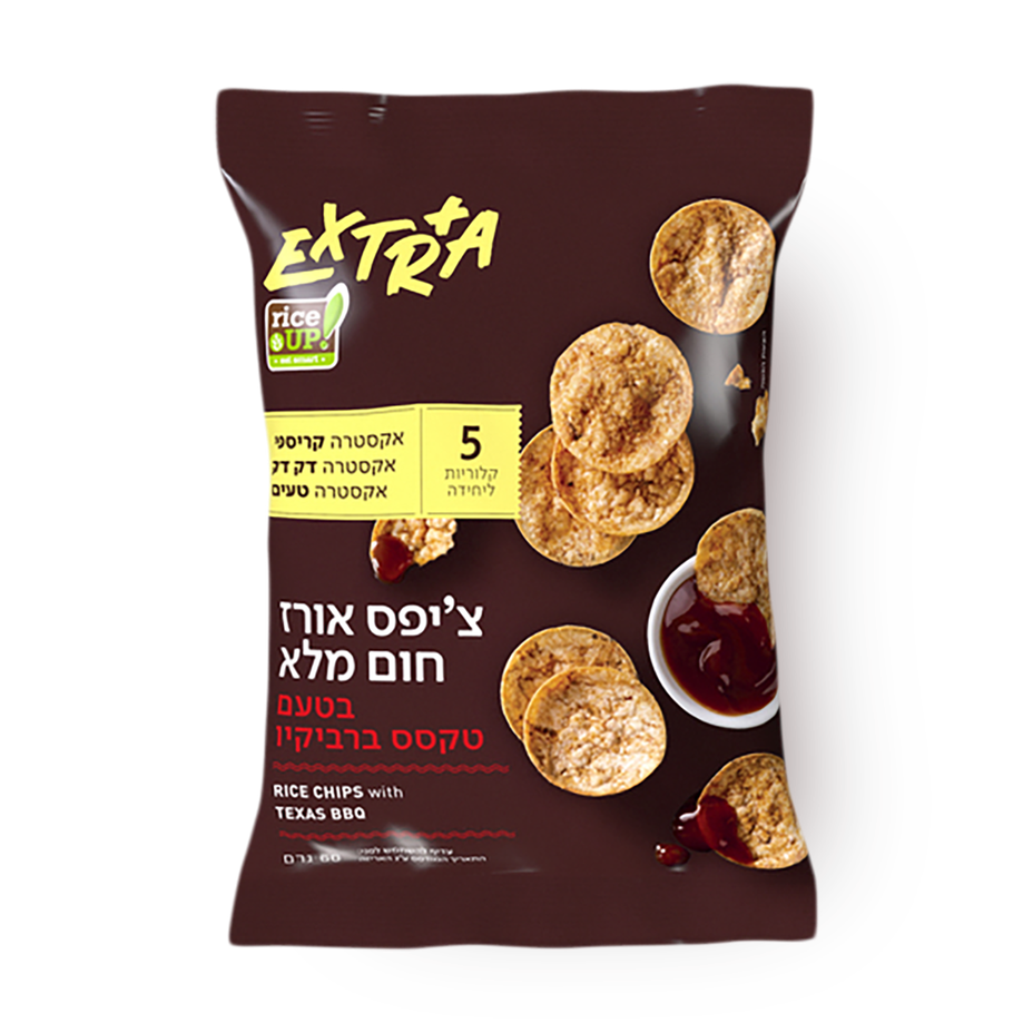 אקסטרה צ'יפס אורז חום מלא טקסס ברביקיו 60 גרם טבעוני|ללא חומרים משמרים|ללא מונוסודיום גלוטומט|מכיל סיבים תזונתיים|רכיבים טבעיים בלבד