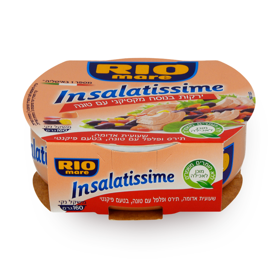 •סלט טונה מסדרת אינסלטיסימה, אידיאלי לארוחה מהירה, מאוזנת וטעימה: הטונה המעולה של ריו מרה בשילוב ירקות בסגנון מקסיקני: תירס, שעועית אדומה ופלפל.