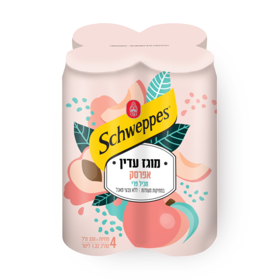 15.9 ₪ instead of standard 21.9 ₪Tagged ingredients: High Sugar, kosher1.2 ₪ / 100 ml - Schweppes apple Pack4 × 330 ml
