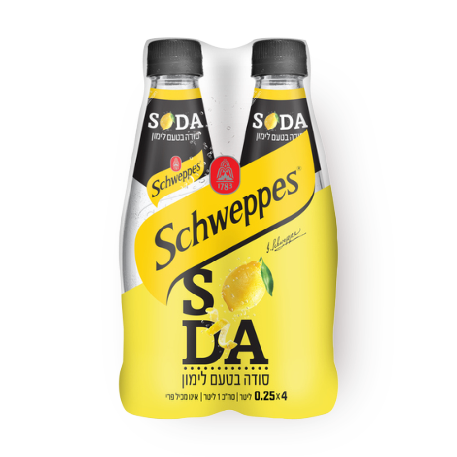 28.9 ₪Tagged ingredients: High Sugar, kosher1.46 ₪ / 100 ml - Schweppes carbonated lemonade NO SUGAR shrink can PACK4 × 330 ml
