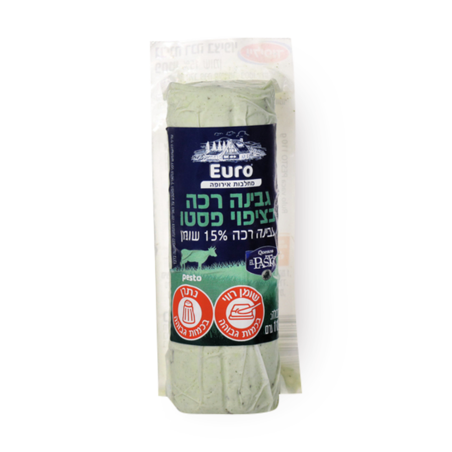 Pasteurized cow's milk, green pesto 2% (parsley, white sugar, salt, basil, maltodextrin, garlic, spices, herbs, food colors (E142, E160) sunflower oil, salt, preservative E202, coagulant, lactic culture