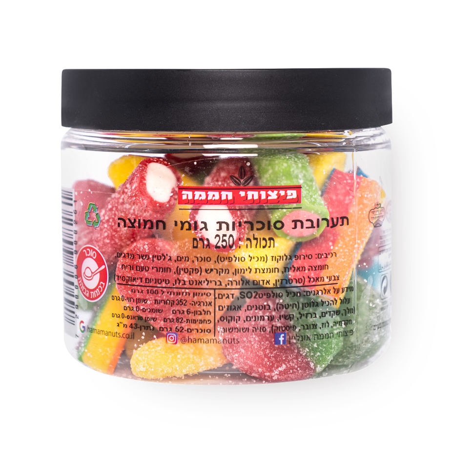 9.9 ₪Tagged ingredients: gluten, High Sugar, kosher4.5 ₪ / 100 g - Sour Sticks apple flavored sour candies100 g