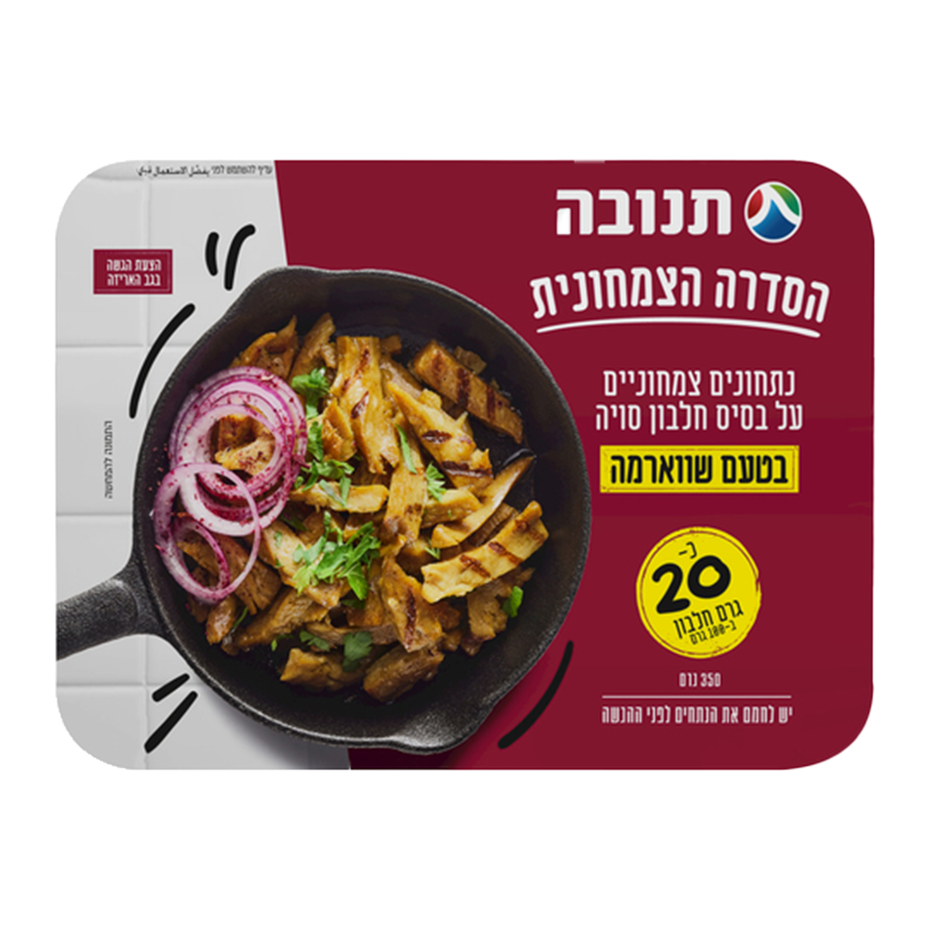 Water, soy protein (15%), vegetable oil (canola), egg white, corn starch, shawarma seasoning mix, flavoring agents, dextrose, iron and vitamin B12.