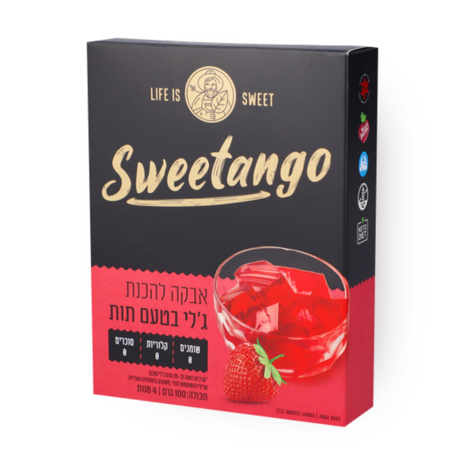 Discover the future, Sweetango brings the next generation of everything sweet and delicious, the same, without the sugar. This time, a sugar-free powder for quick preparation of strawberry-flavored jelly, the most nostalgic. Vegan and approved by the Israeli Diabetes Association.