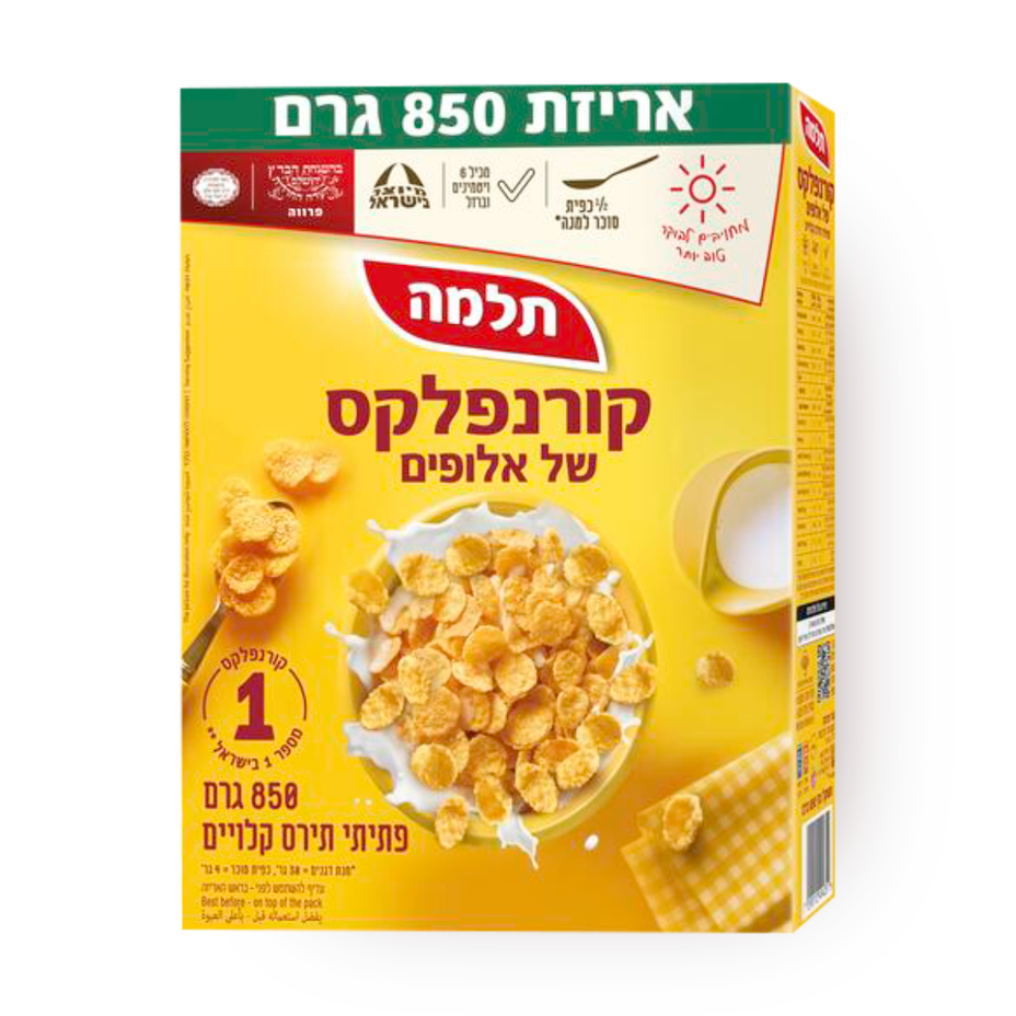 Champions Cornflakes! The favorite corn flakes - made from roasted corn flakes without preservatives, with 6 vitamins and iron. We at Thelma believe that breakfast is a very important meal. A nutritious, satisfying breakfast, and of course - delicious, is the key to a successful day!