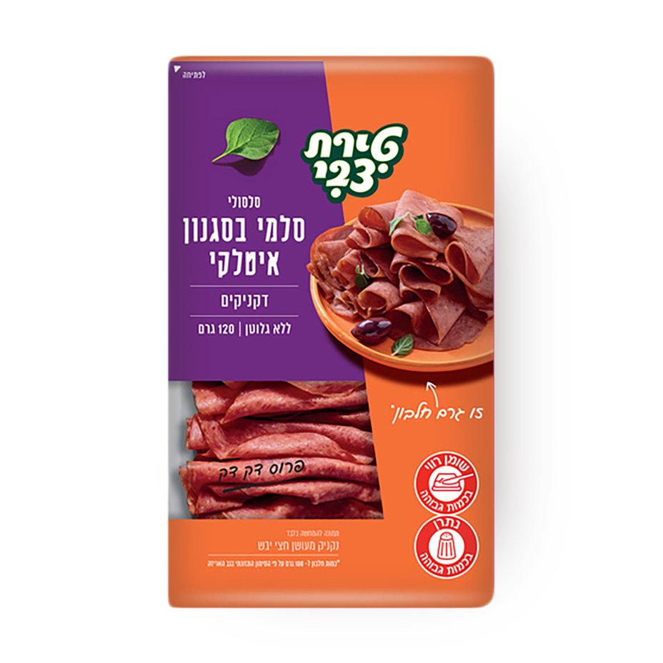 39.9 ₪Tagged ingredients: High Saturated Fat, High Sodium, kosher39.9 ₪ / 100 g - Yehiam Thin thin Italian style salami120 g