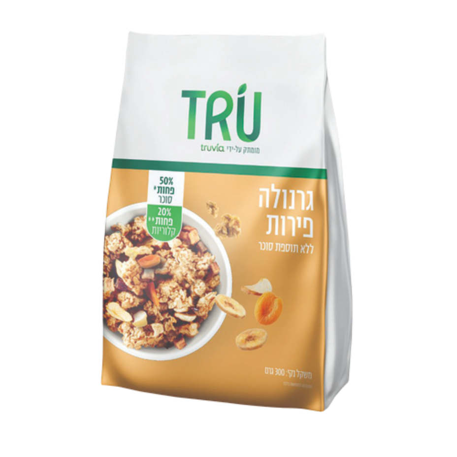 Whole oat flakes (32%) (contains gluten), whole wheat flakes (22%), psyllium fibers, dried fruits (12.3%) (apricot, apple, banana), crispy wheat-corn flakes (wheat flour, corn grits, corn semolina), wheat flour, canola oil, rice flour, Truvia sweetening agents (erythritol, flavor and aroma glycosides, Steviol R sweetener), flavoring agents, antioxidants (ascorbyl palmitate, tocopherol-rich extract).