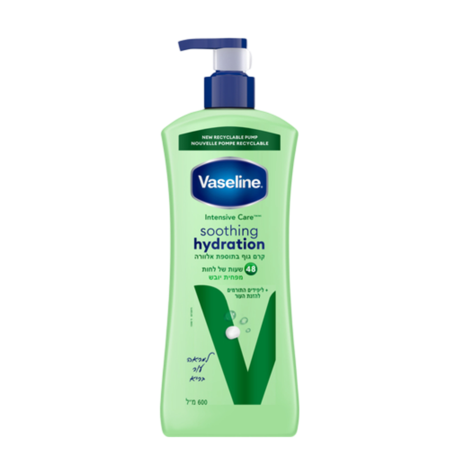 תחליב גוף בתוספת אלוורה מרגיע ומשקם עור יבש* ללא תחושה שמנונית *עור יבש הנגרם כתוצאה מנזקי מזג האוויר