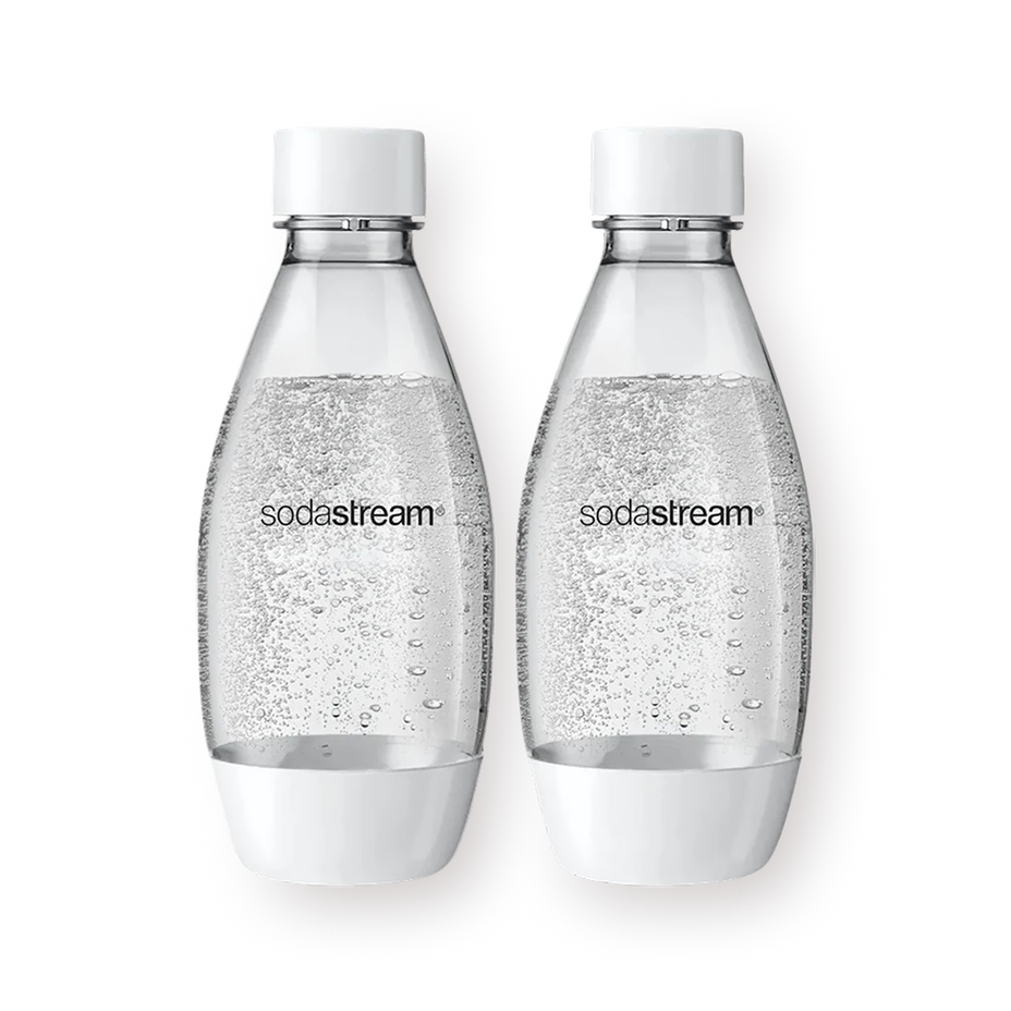 A pair of personal white bottles (0.5 liters) Your new personal soda bottle, perfectly sized, because it's not always convenient to share soda with others. The bottles are sold in pairs, for a drinking experience that will accompany you everywhere.