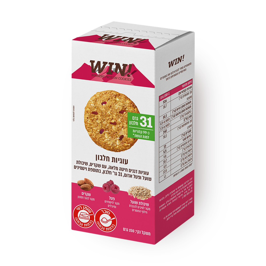 WIN- PROTEIN COOKIES- Whole Grain Cookies, Oats And Almonds, Raspeberry Flavor.