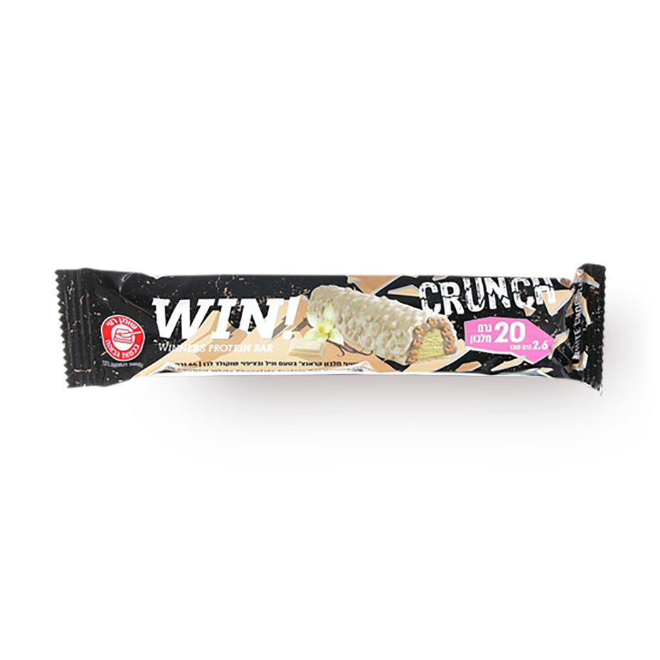 WIN! Vanilla crunch protein bar with white chocolate coating