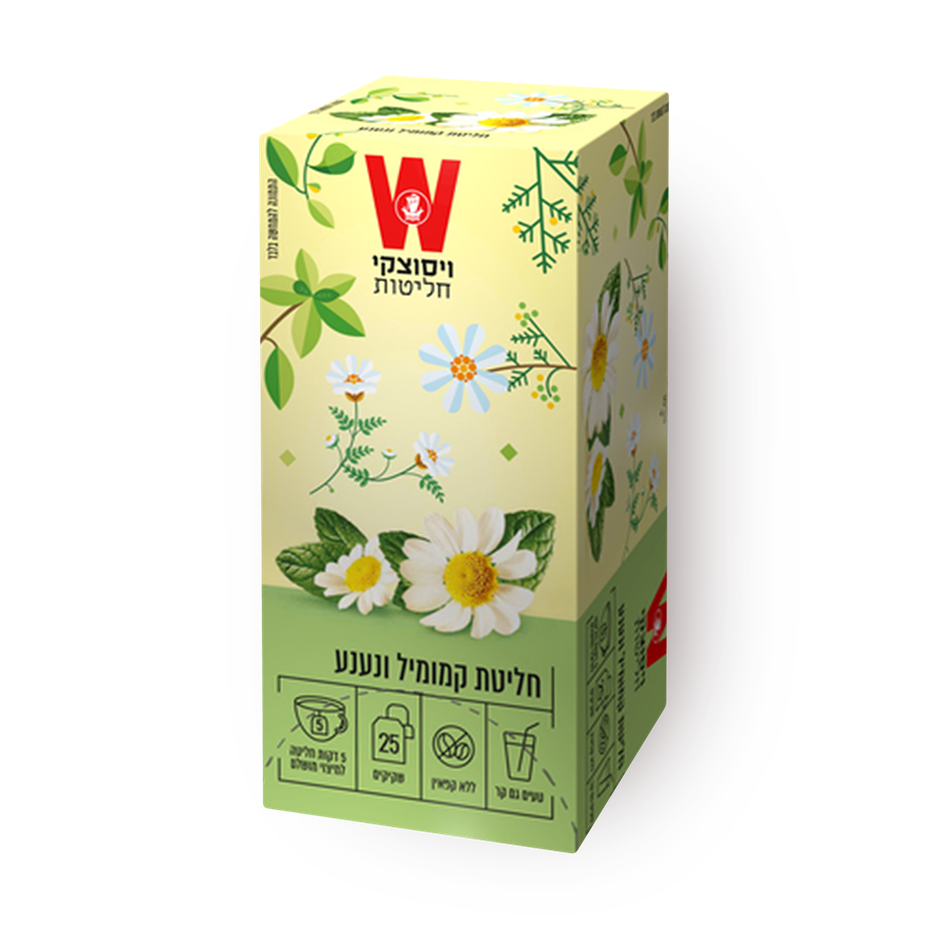 A combination of chamomile with mint gives a pleasant feeling of freshness and creates a delightful infusion. The Wissotzky collection of infusions, plants and fruits is a rich and pampering world of flavors and aromas. Infusions contain mixtures and extracts of fruits, plants and spices.