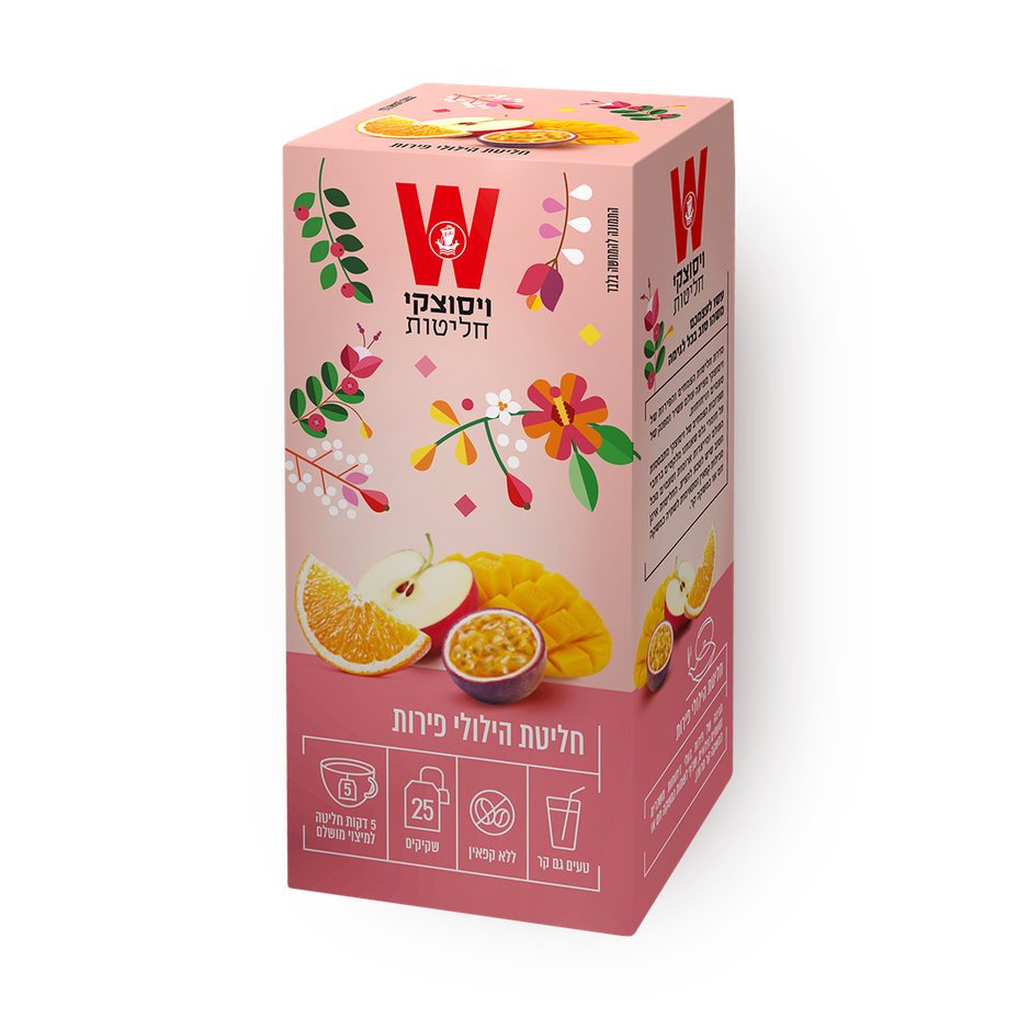 An infusion that is a bland of fruits with giddy aromas that fill the mouth with wonderful flavors. The Wissotzky collection of herbal and fruit infusions is a rich and embracing world with a huge variety of flavors and aromas. Infusions contain mixtures and extracts of fruits, plants and spices.