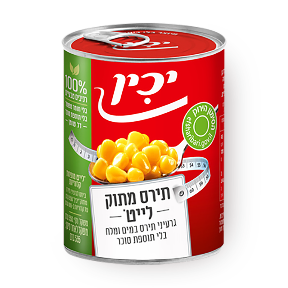תירס מתוק לייט - גרעיני תירס במים ומלח בלי תוספת סוכר יכין.דל שומן|ללא חומרים משמרים|ללא תוספת סוכר