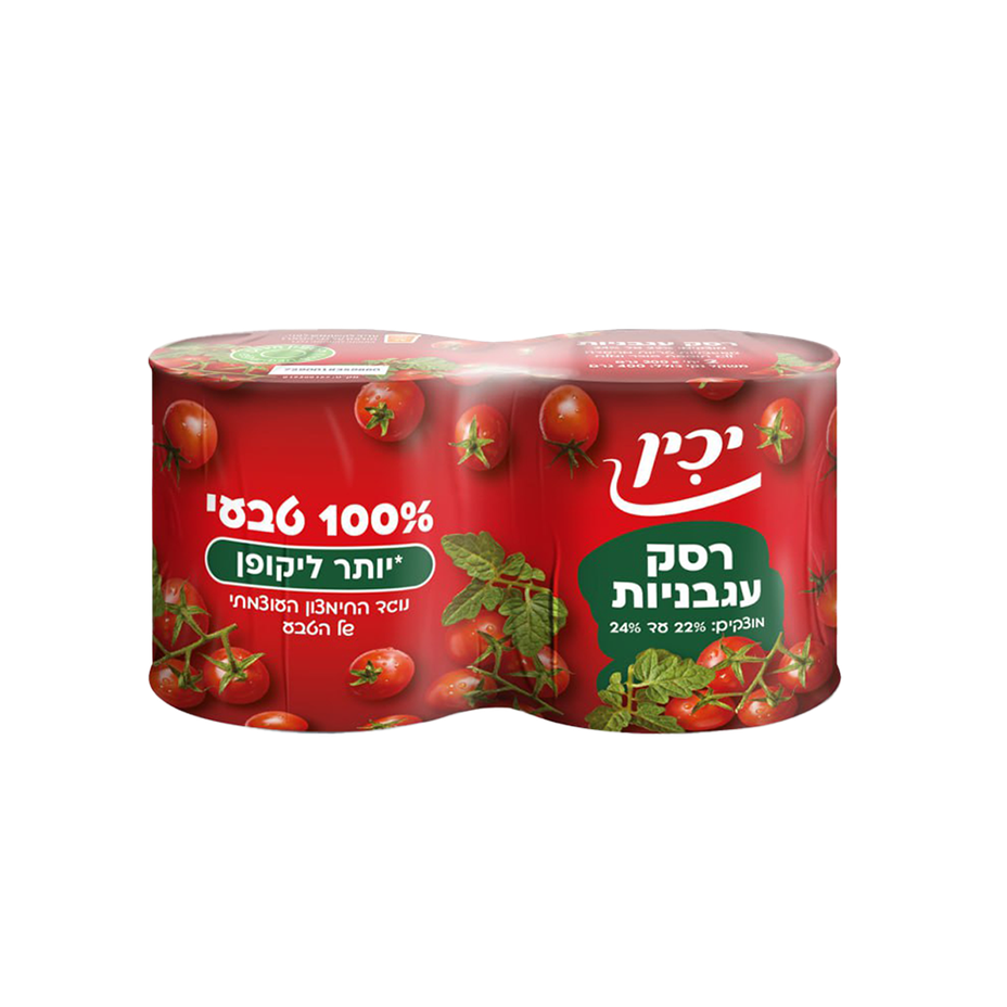100% עגבניות, מקור הסוכרים והנתרן בעגבניה בלבד.בלי חומר משמר. בלי תוספת סוכר ומלח.