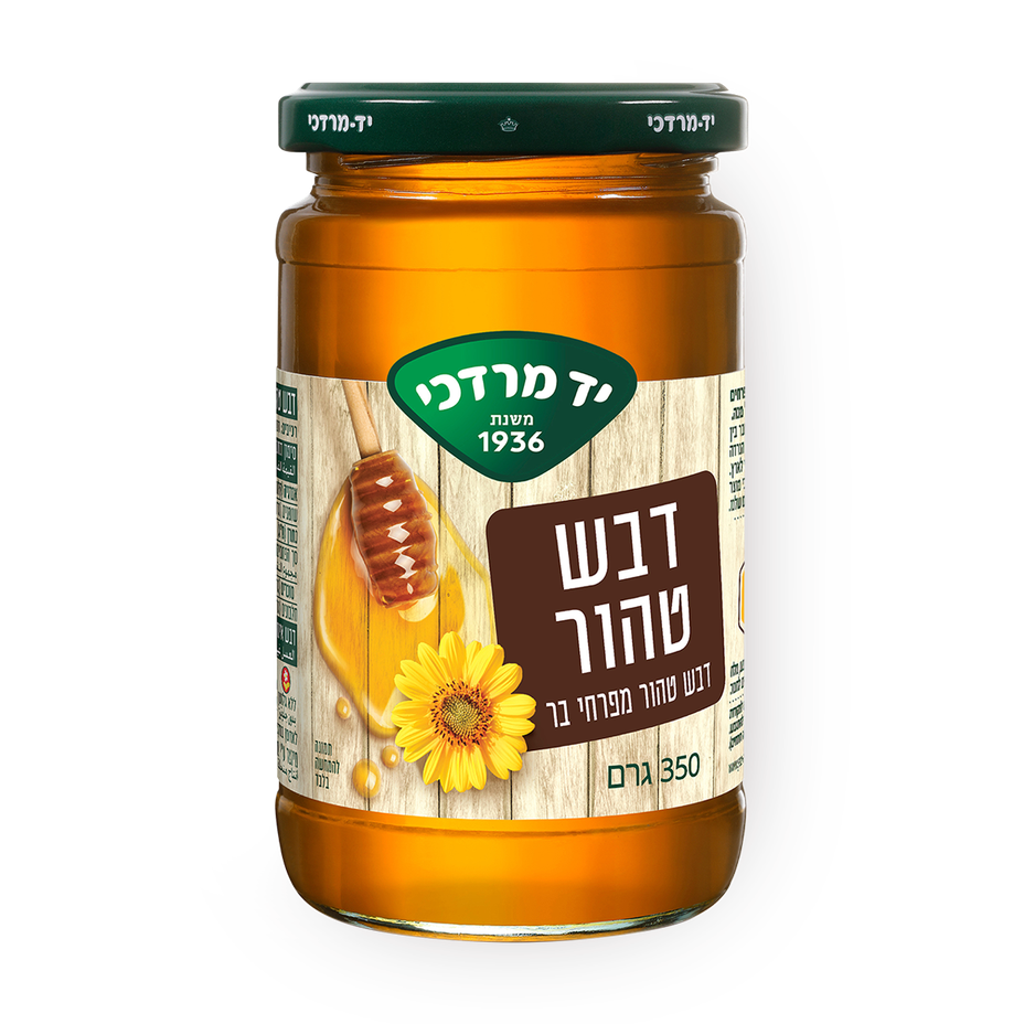 Yad Mordechai pure honey from wild flowers in a 350 gram jar. Gluten-free