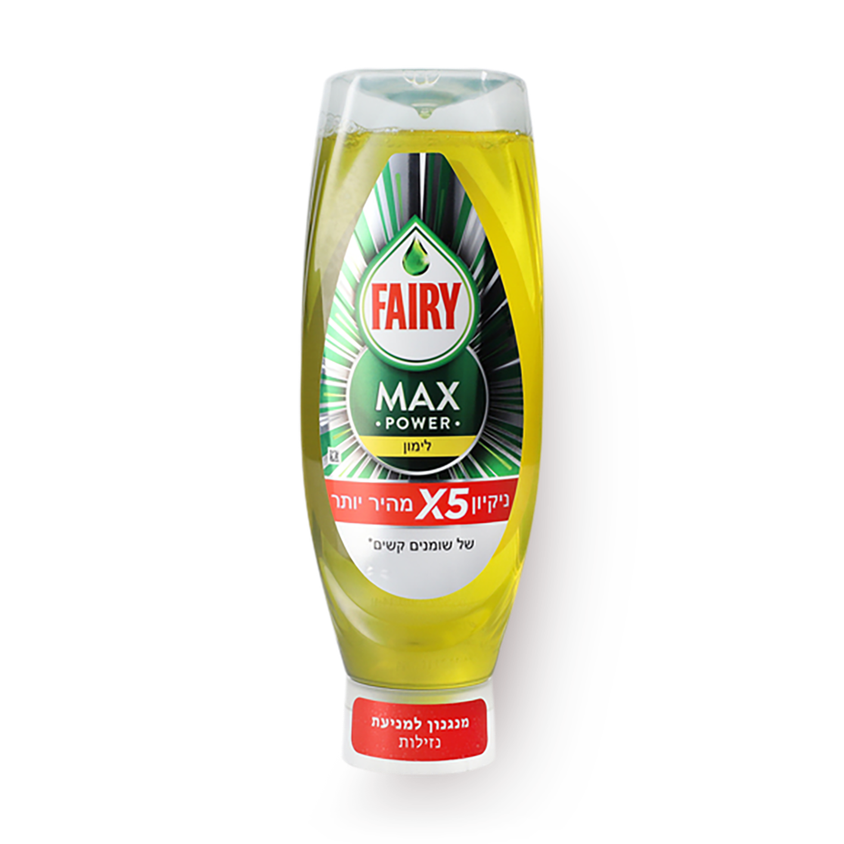 פיירי מקס פאוור בבקבוק לחיץ שעומד על הפקק, כך שלא נשאר נוזל שלא בשימוש בתחתית הבקבוק. לשימוש חסכוני ויעיל באמצעות לחיצה קצרה על הבקבוק . עם מנגנון ייחודי למניעת נזילות שמונע דליפה מפקק הבקבוק. * סבון כלים מרוכז במיוחד, כך שטיפה אחת בלבד יכולה לשמש להדחת כלים רבים