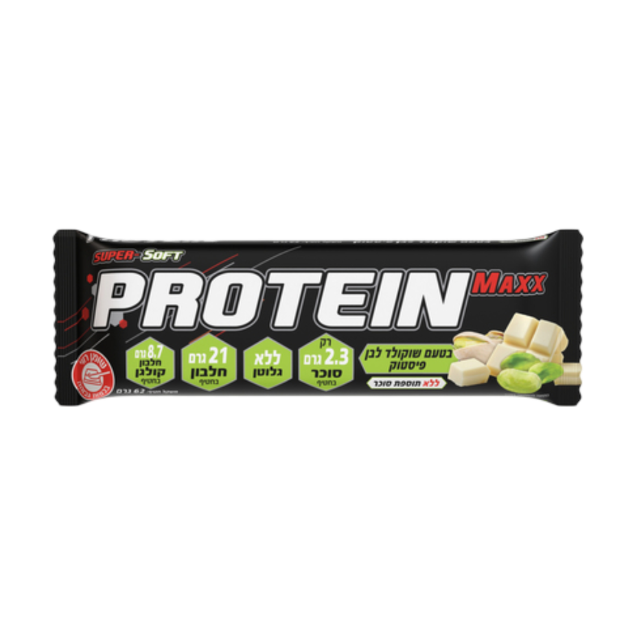חטיף פרוטאין מקס בטעם שוקולד לבן פיסטוק
