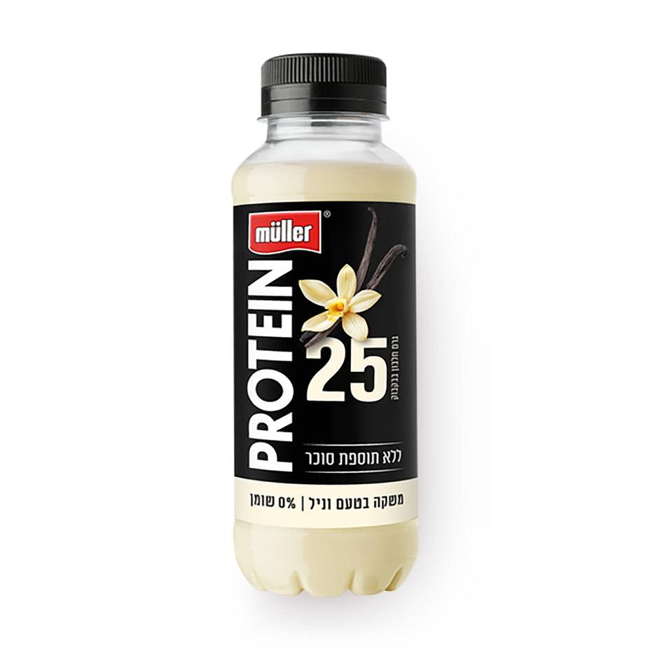 משקה חלבון מולר בטעם וניל , 0% שומן, 25 ג׳ חלבון בבקבוק, ללא תוספת סוכר, דל לקטוז