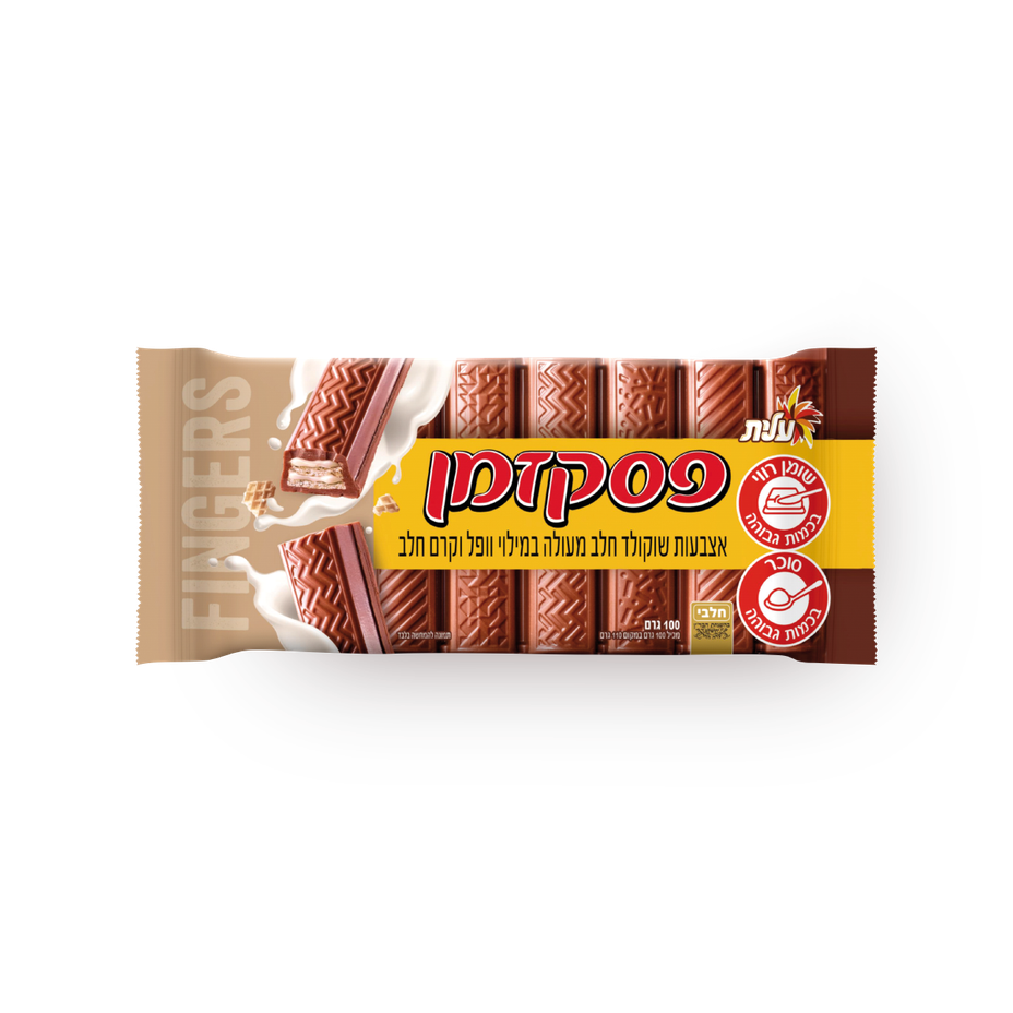 פסק זמן אצבעות שוקולד חלב במילוי וופל וקרם חלב