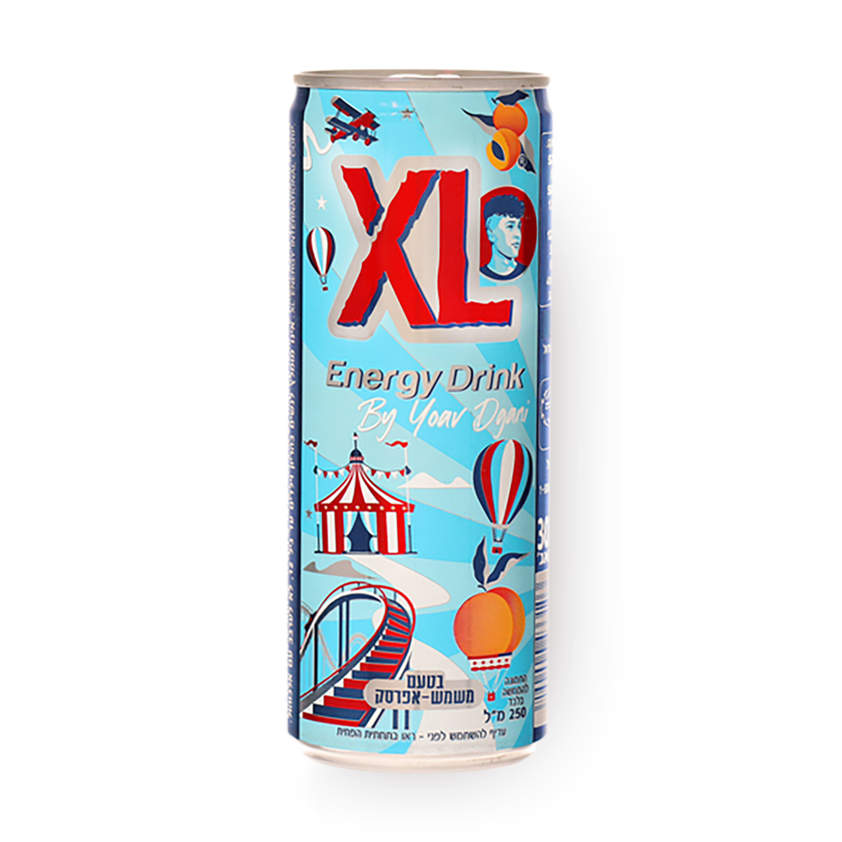 אקס אל אנרג'י דרינק משקה אנרגיה מוגז בטעם אפרסק ומשמש
