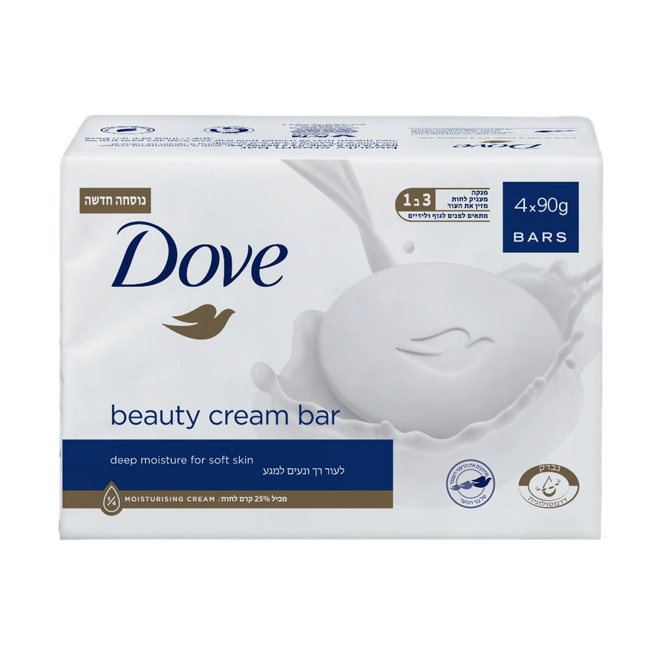 אל סבון מוצק של דאב בניחוח קלאסי, לטיפוח העור מכיל 25% קרם לחות לשמירה על רכות וגמישות העור.