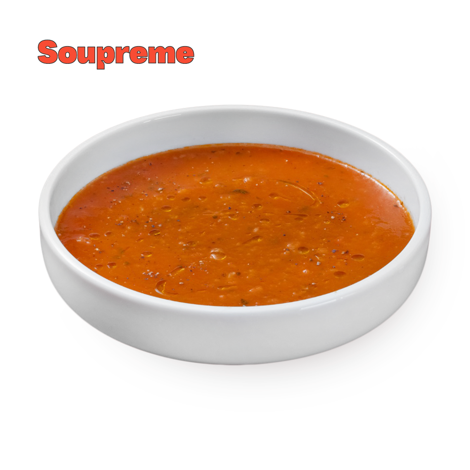 מים, עגבניות(10%), בצל, עגבניות פולפה(6%), גזר, סלרי, יין לבן, אורז ריזוטו, עגבניות שרי שמש(1.5%), שמן זית, רסק עגבניות(1.2%)(עגבניות 96%, סוכר לבן, מווסת חומציות(330E)),סוכר לבן, מלח, פטרוזיליה, שום, בזיליקום, חומץ תפוחים, עלי אורגנו, מרווה, פלפל שחור טחון.