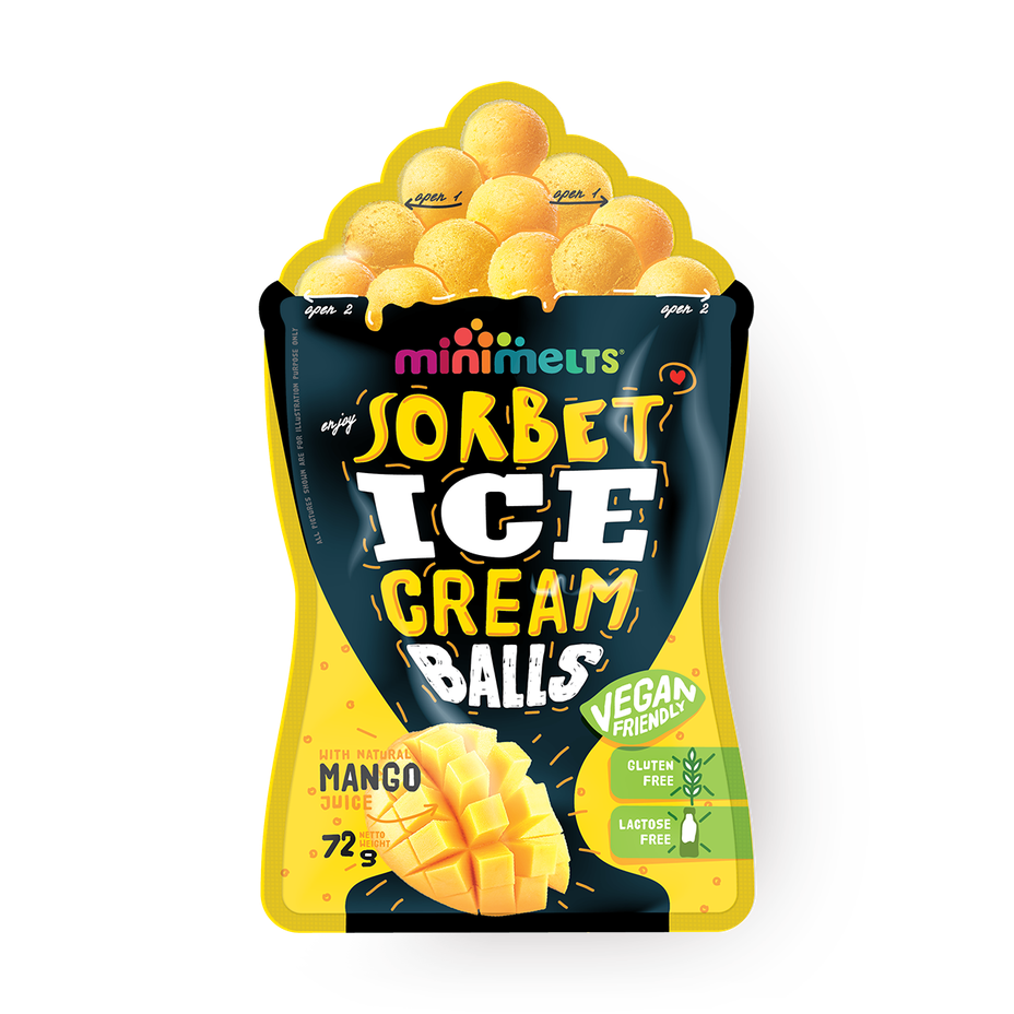 כדורי גלידת סורבה בטעם מנגו מינימלטס