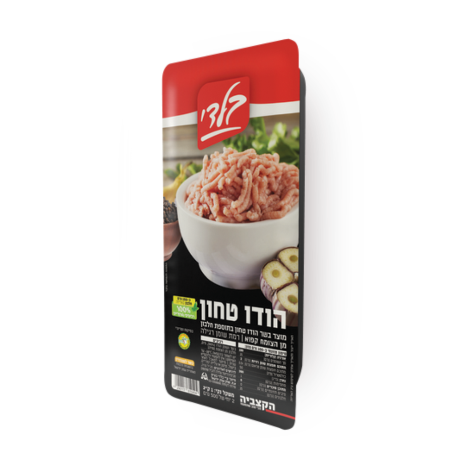 בשר ושומן הודו (90%), מים, חלבון מן הצומח (סויה)