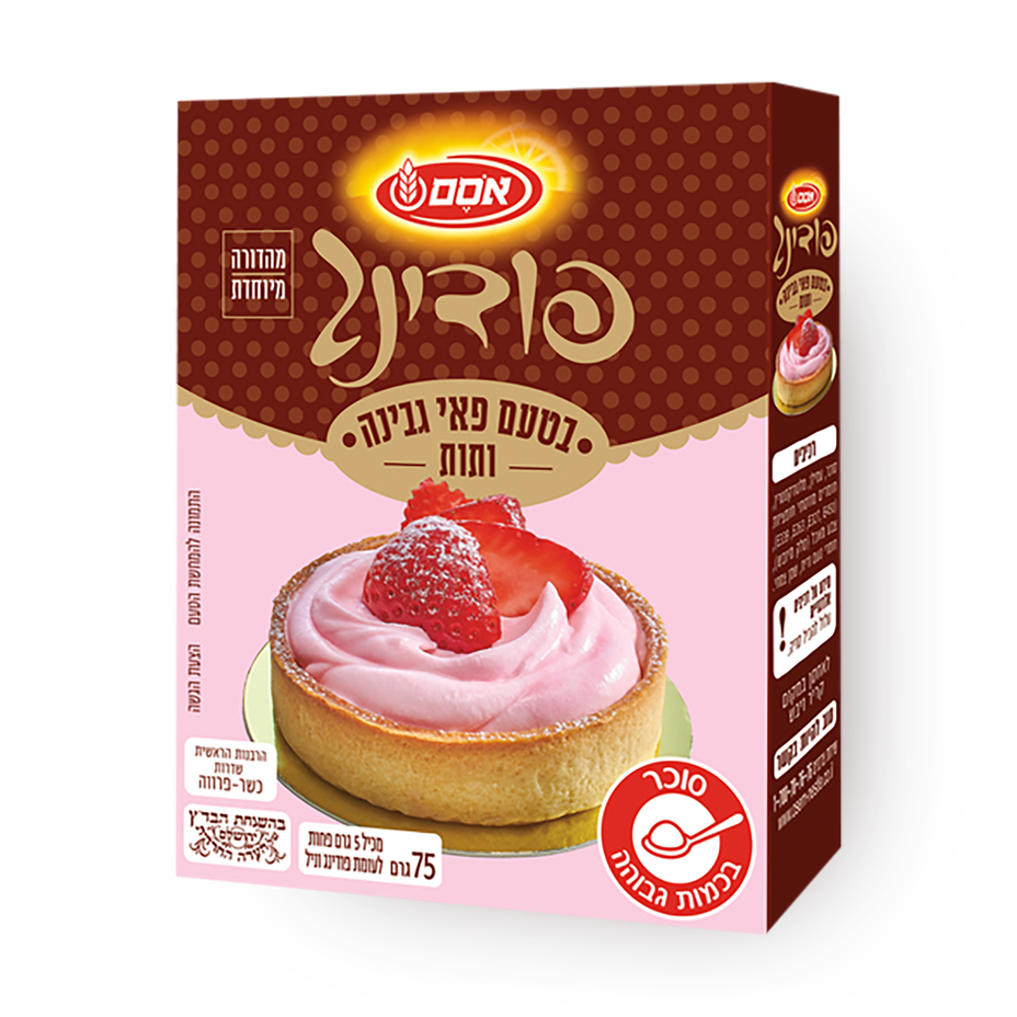 פודינג אינסטנט בטעם פאי גבינה ותותInstant pudding with cheesecake and strawberry flavor