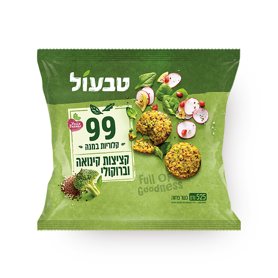 קציצות הקינואה וברוקולי מבוססות על קינואה לבנה ואדומה, ירקות, חלבון מן הצומח, והן מקור לסיבים תזונתיים. הן בעלות מרקם ירקות עשיר וטעם נפלא. כיף לאכול אותן ביד או כארוחה טובה וקלה עם ירקות ירוקים מוקפצים ורוטב יוגורט בצד