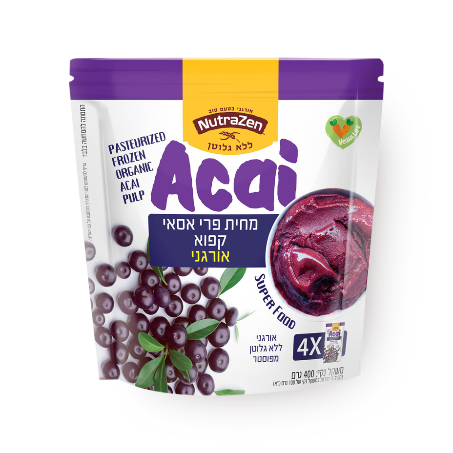 מחית פרי אסאי קפוא אורגני. סופר פוד להכנת שייקים ומיצי פירות, גלידות וקינוחים