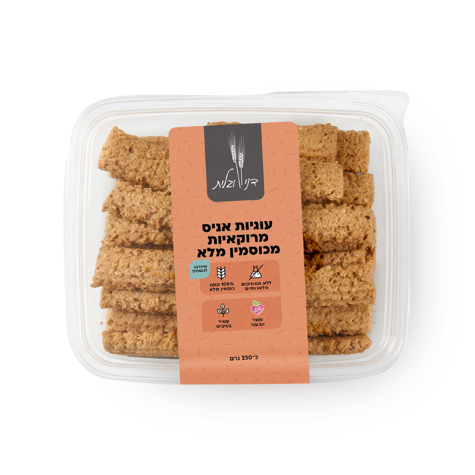 העוגיות הקלאסיות מבית הסבתא המרוקאית של גלית בגירסה בריאה יותר עם 100% קמח כוסמין מלא ,סוכר קנים חום, ללא מרגרינה וללא שומן טראנס. עם תוספת של אניס (ינסון) לאקסטרה טעם. מסומנות בתו של veganfriendly - ללא ביצים, ללא חלב וללא מוצרים מן החי.