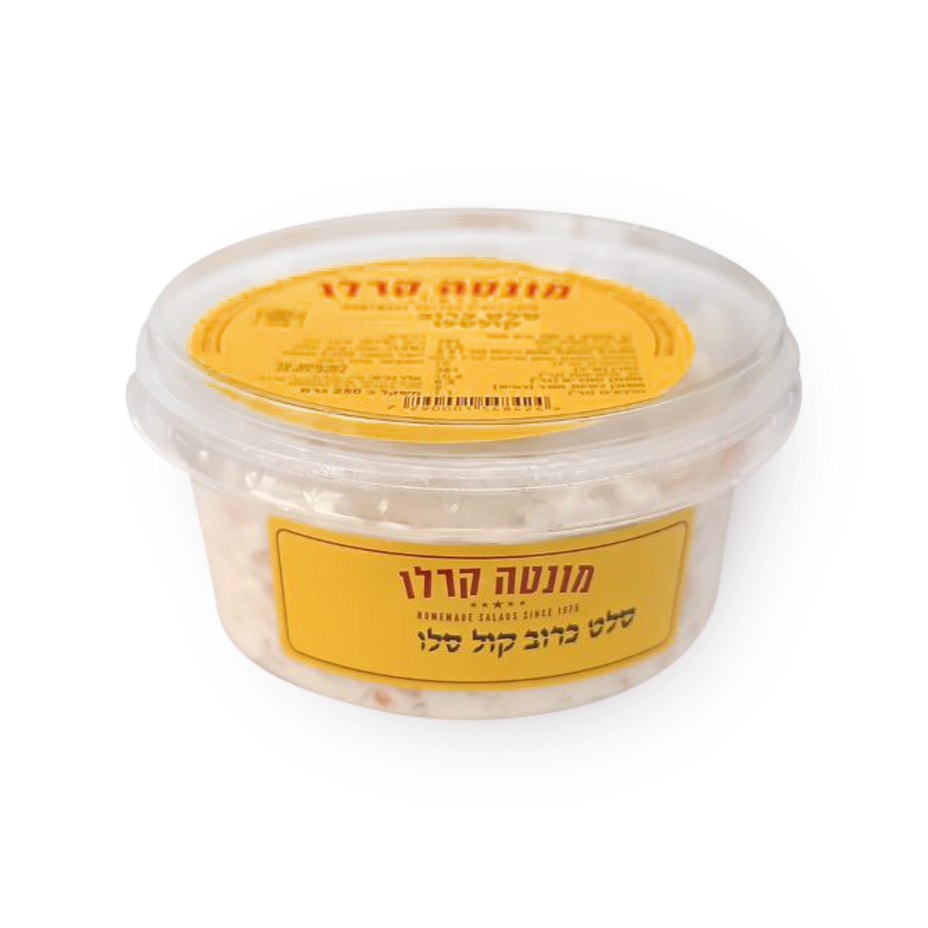 כרוב (57%), מיונז, גזר (14%), סוכר, מים, מלח, חומר משמר E202, מווסת חומציות: מלח לימון