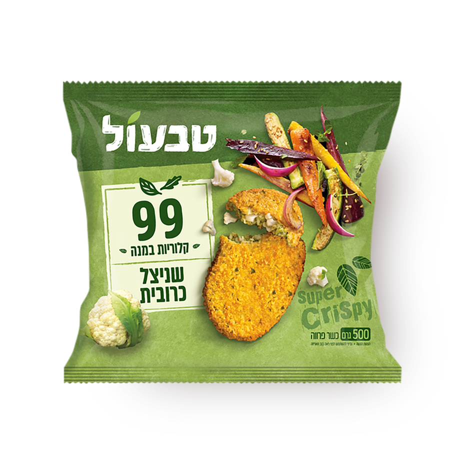 כרובית (50%), פירורי לחם (קמח חיטה (מכיל גלוטן), שמרים, מלח, שמן צמחי, צבע מאכל: תמצית פפריקה),שמן צמחי , קישואים, מים, בצל, חלבון ביצה, סיבים תזונתיים (תאית, הדרים, עולש), כוסברה, בצל מיובש, פטרוזיליה, עמילן תירס, קמח חיטה, מלח, שום, תבלינים, ג'ינג'ר, פטרוזיליה מיובשת, תמצית שמרים, מייצבים (מתיל תאית, גואר גאם), רכז לימון.