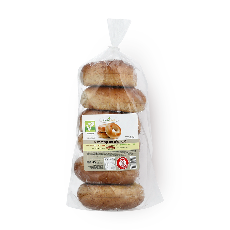 מארז 6 בייגל אמריקאי עם קמח מלא, מבושל ואפוי. המוצר מגיע קפוא
