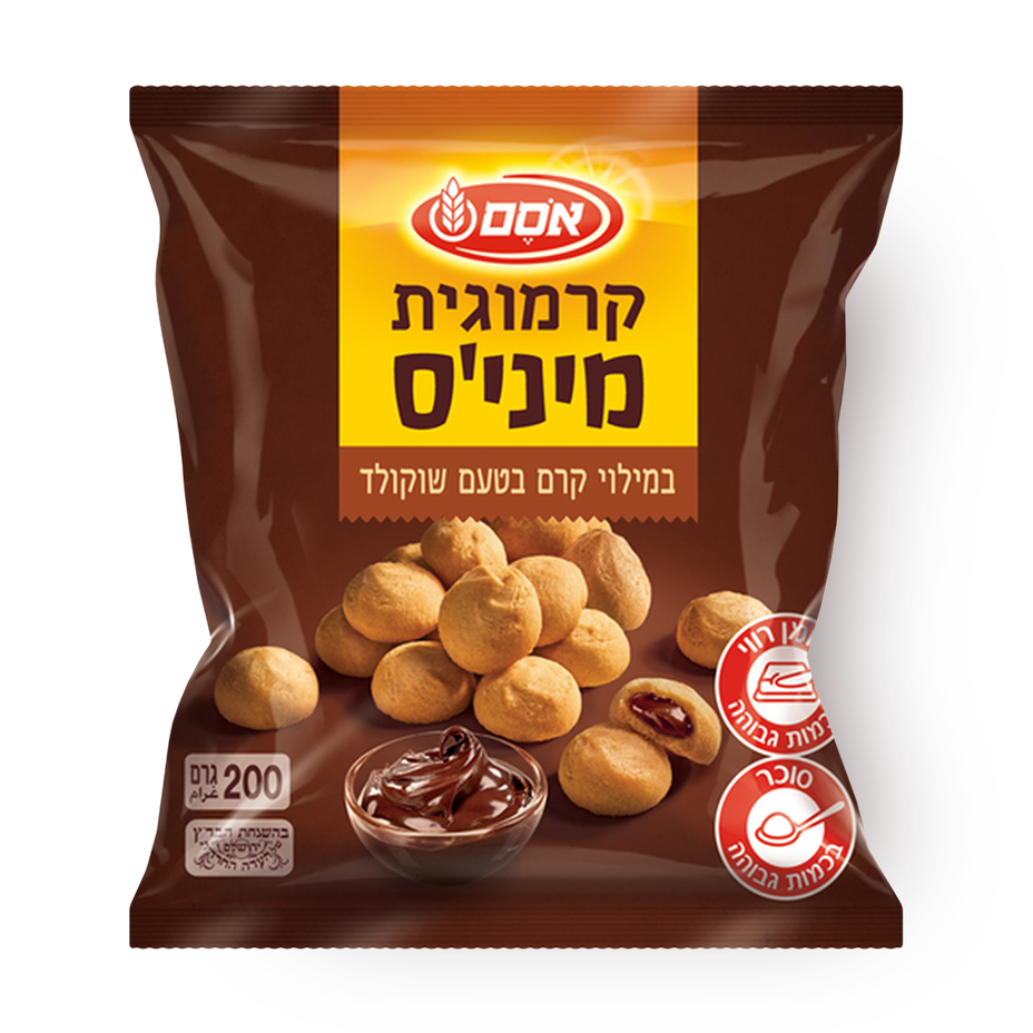 15.9 ₪רכיבים שתויגו: גלוטן, שומן רווי בכמות גבוהה, סוכר בכמות גבוהה, כשר10.6 ₪ – 100 ג' - קרמוגית אסם במילוי שוקולד200 ג'
