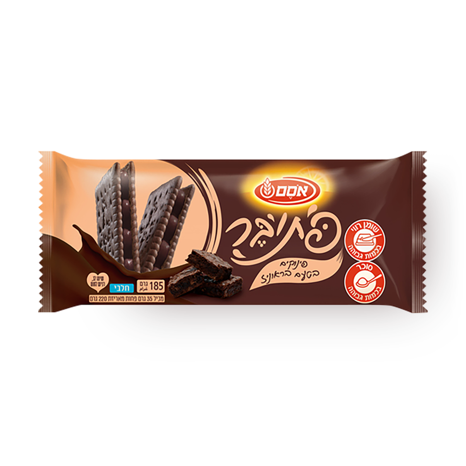 ביסקוויט בטעם שוקו עם מילוי קרם בטעם עוגת בראוניס פאדג'