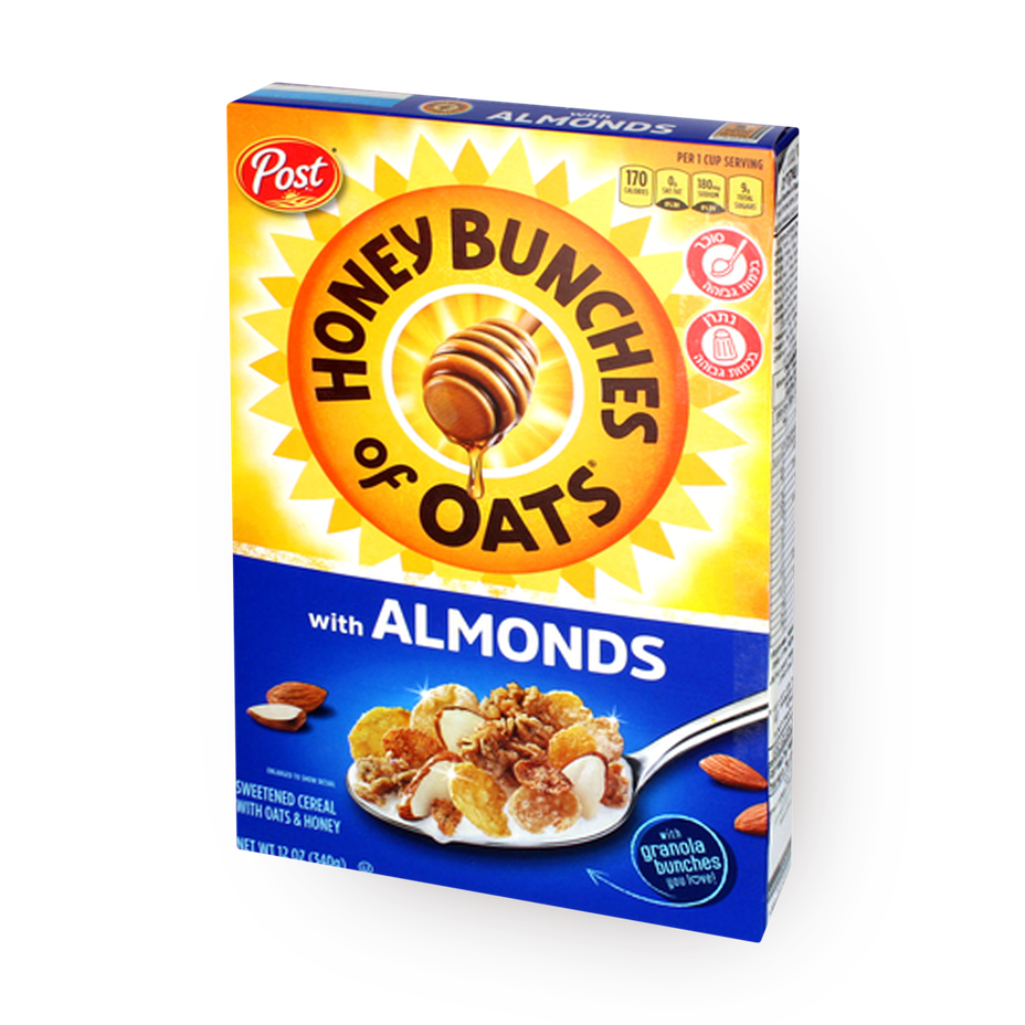 תירס(33.4%), חיטה מלאה(גלוטן)(17.7%), סוכר, פתיתי שיבולת שועל מלאה(גלוטן)(12.7%), שקדים (4.4%) אורז, שמן קנולה ,קמח חיטה (גלוטן), קמח לתת שיעורה(גלוטן) סירופ תירס, מלח, דבשה, דבש(0.21%) צבע מאכל קרמל, מיצוי לתת שיעורה(גלוטן),קינמון, חומרי טעם טבעיים טבעיים ומלאכותיים, מעכב חמצוןE321 ויטמינים ומינרלים: ברזל, ניאצינאמיד, ויטמין A פלמיטט, ויטמין B6, תחמוצת האבץ, תיאמין מונוניטרט, ריבופלאבין, חומצה פולית, ויטמין D3, ויטמין B12