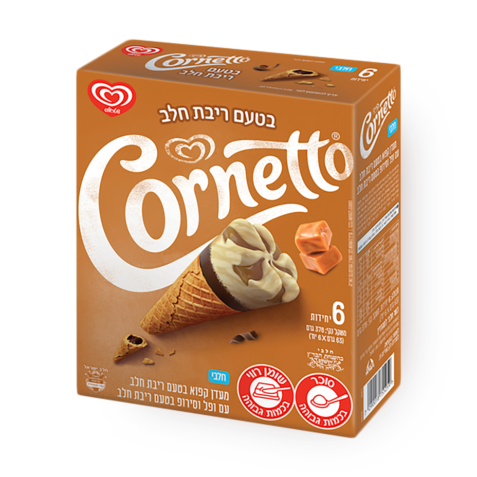 מים, ופל (16%) (קמח חיטה (מכיל גלוטן), סוכר, שמן צמחי, מתחלב (לציטין סויה), עמילן, מלח), צימקאו (11%), סוכר, סירופ גלוקוזה, סירופ בטעם ריבת חלב (5.5%) (סוכר, מים, אבקת חלב, מלטודקסטרין, שמן צמחי, מלח, מווסת חומציות(E-500ii), חומר משמר(פוטסיום סורבט), מייצב (E-406), חומרי טעם וריח), מוצקי חלב (חלב ישראל) (אבקת חלב, רכז חלבוני מי גבינה), שמנים צמחיים, מתחלב (E-471), מייצבים (E-407, E-412, E-410), סירופ סוכר שרוף, חומרי טעם וריח, צבע מאכל טבעי ( בטא קרוטן).