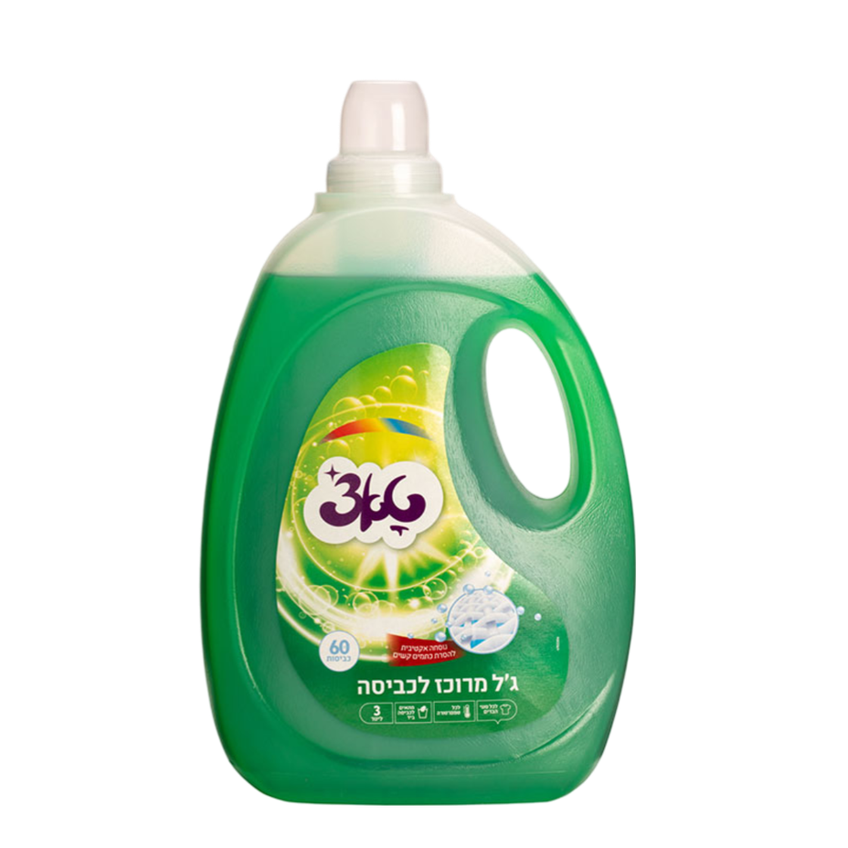 ג’ל מרוכז וריחני לכביסה, מתאים לכל הטמפרטורות ולכל סוגי האריגים.