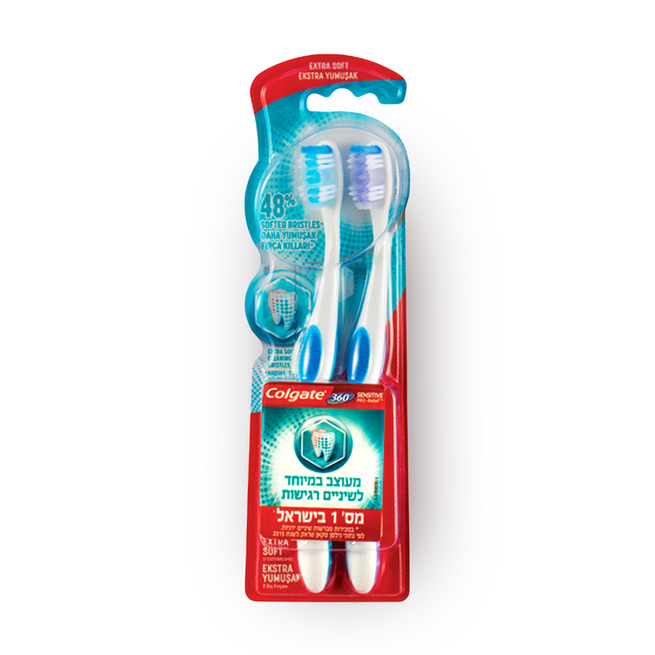 זוג מברשות שיניים קולגייט 360 סנסיטיב לשיניים וחניכיים רגישות 2 יח'
