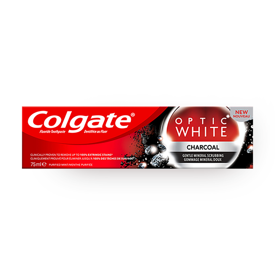 קולגייט אופטיק וייט פחם. הוכחה קלינית כמסירה עד 100% מהכתמים החיצוניים*. משחת שיניים עם פלואוריד. צחצוח עדין. עם פחם פעיל ומיקרו-חלקיקים מינרליים Pure Mint עדינים שיסייעו בהסרת כתמים חיצוניים מהשיניים**. בטוח לזגוגית השן/אמייל בשימוש יומיומי. *לאחר שבועיים של שימוש פעמיים ביום ע"פ מחקר שנעשה ע"י החברה. ** בשימוש בהתאם להוראות השימוש לכתמים חיצוניים בלבד.