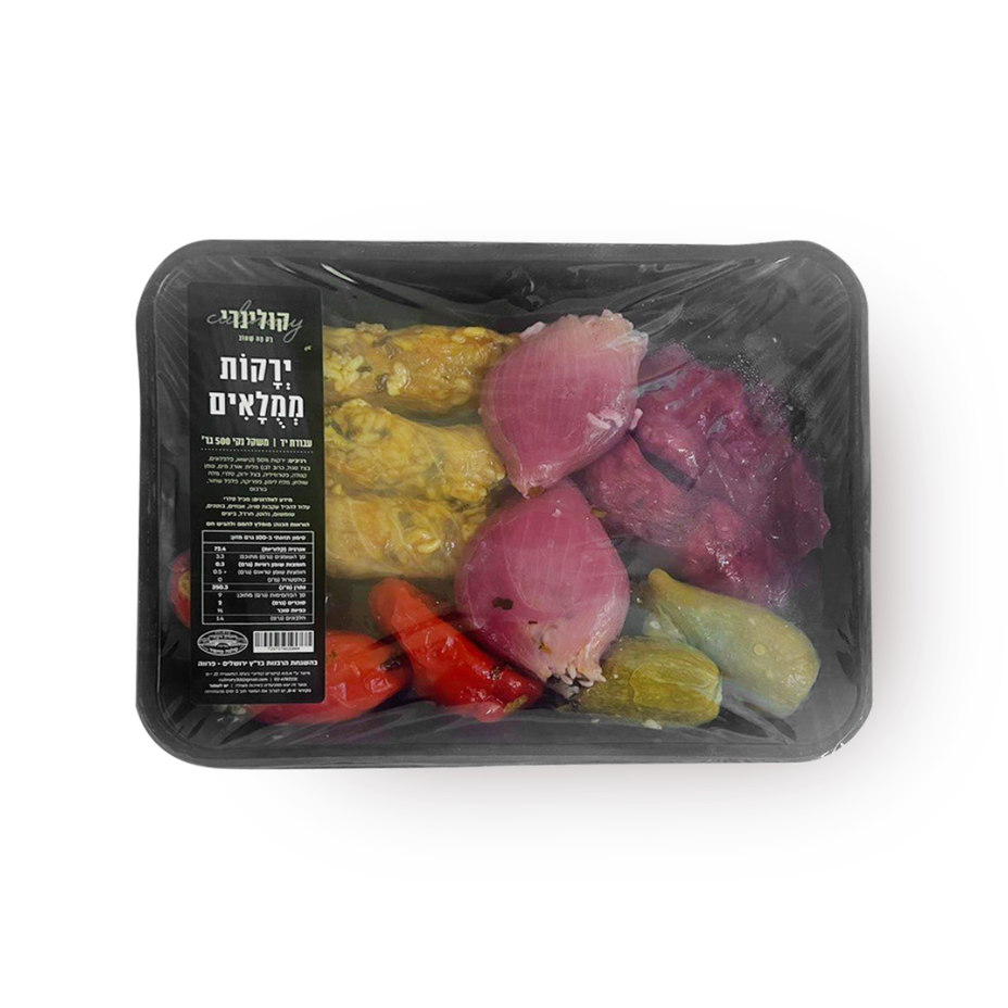 ירקות 50% (קישואֿ פלפלונים, בצל סגול, כרוב לבן) מלית: אורז, מים, שמן קנולה, פטרוזיליה, בצל ירוק, סלרי, מלח שולחן, מלח לימון, פפריקה, פלפל שחור, כורכום