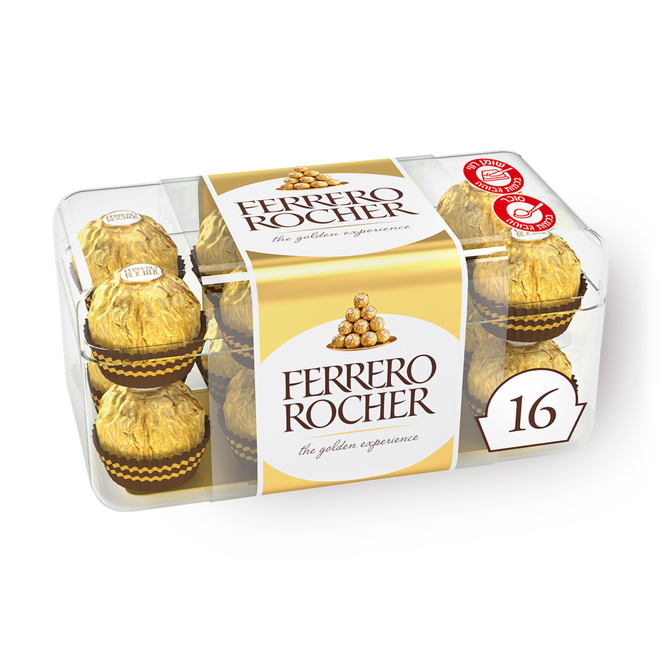 שוקולד חלב( 30%)( סוכר, חמאת קקאו, מסת קקאו, אבקת חלב כחוש, שומן חלב, מתחלב( לציטין סויה), חומרי טעם וריח( ונילין), אגוזי לוז( 28.5%), סוכר, שמן צמחי, קמח חיטה( מכיל גלוטן), אבקת מי גבינה, קקאו דל שומן, מתחלב( לציטין( סויה)), מתפיח( סודיום ביקרבונט), מלח שולחן, חומרי טעם וריח( ונילין). כלל מוצקי קקאו בשוקולד חלב: 42%