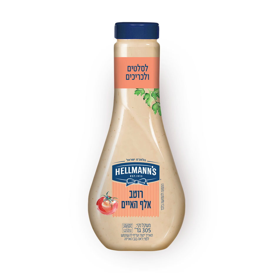 מים, שמן צמחי, סוכר, תרכיז עגבניות( 9.5%), סוכר, חומץ, חלמון ביצה, חרדל, עמילן מעובד( לימות השנה:E1414, לפסח:E1422), מלח, חומצת מאכל( E338), חומרי טעם וריח, תבלינים( אבקת שום, פלפל לבן), מייצב( קסנטן גאם), חומר משמר( E202), פטרוזיליה מיובשת( 0.04%), מעכב חמצון( E385), צבע מאכל( E150d).